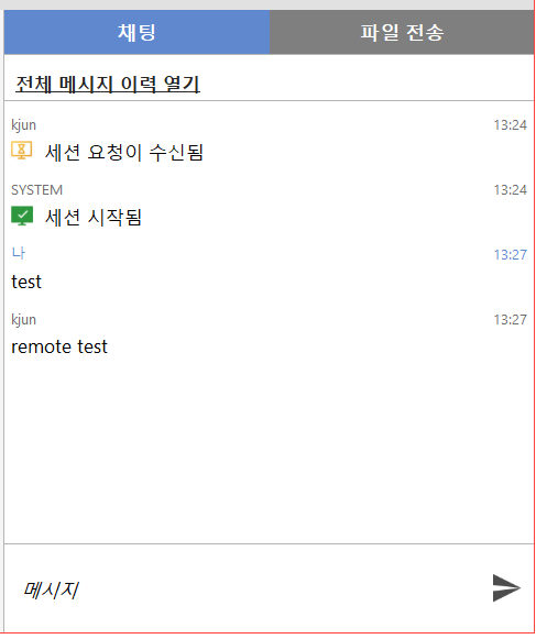 원격으로 붙은 사람과 채팅이 가능합니다.