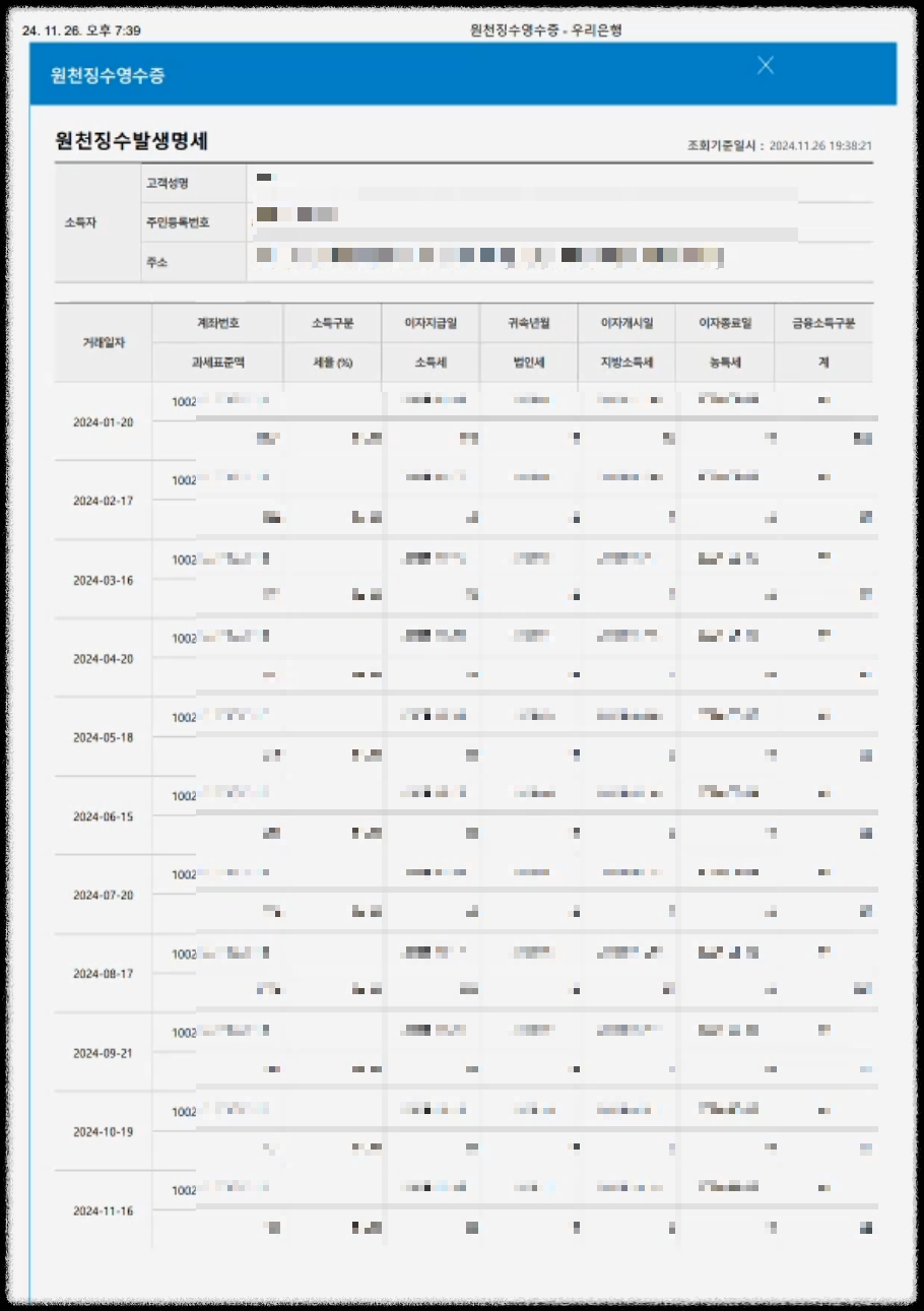 아래가 원천징수영수증인데 고객성명과 주소가 있습니다.