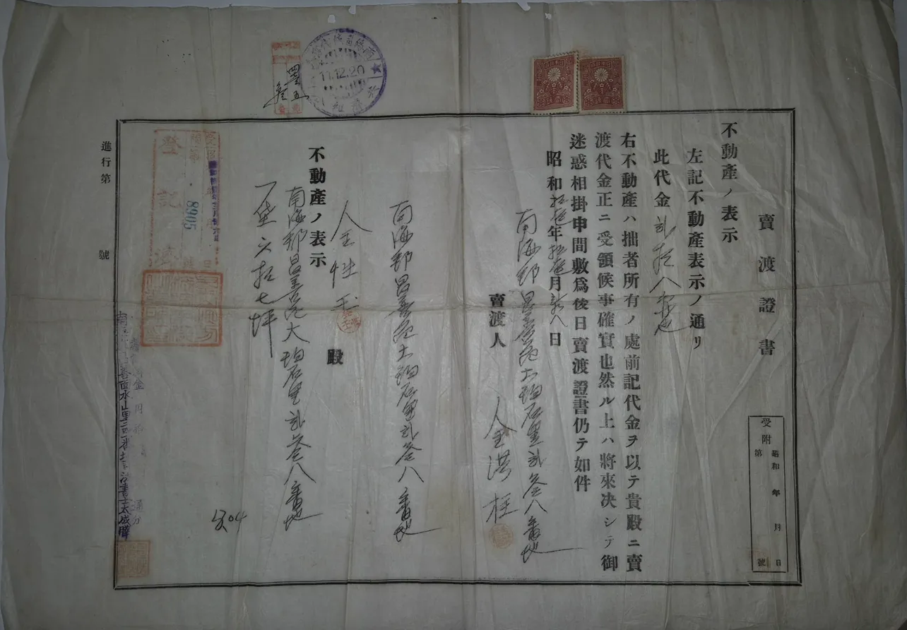 이 문서는 일제강점기 조선에서 사용된 부동산 관련 공식 문서입니다. 일제는 1910년부터 1918년까지 토지조사사업을 시행하며 근대적 토지 소유권 제도와 부동산등기제도를 도입했습니다.