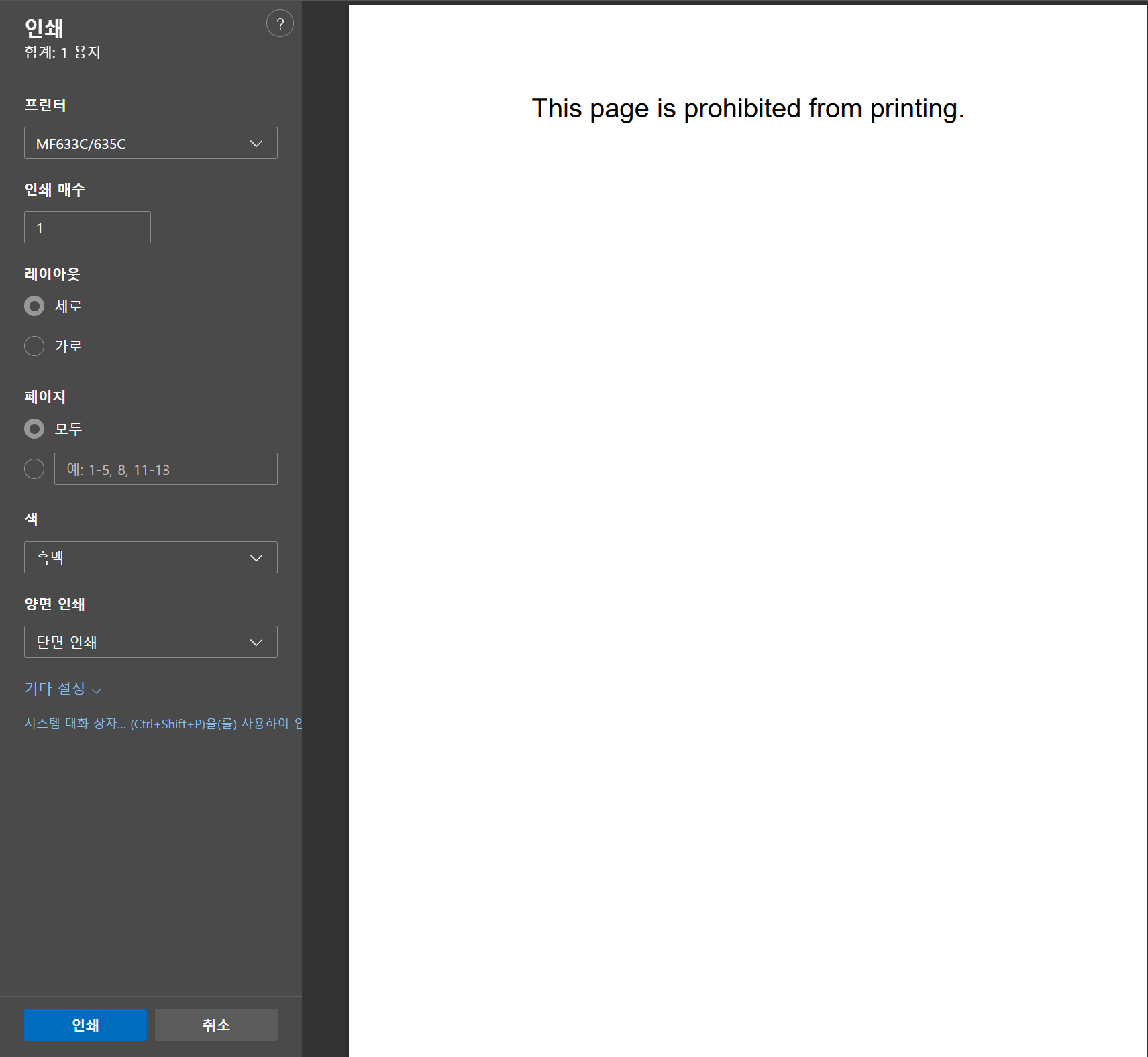 그러나 인쇄 시 내용을 숨기거나 빈 페이지로 만드는 방법으로 실질적으로 인쇄를 막을 수 있습니다. 가장 간단하고 효과적인 방법은 CSS의 @media print를 사용하는 것입니다.