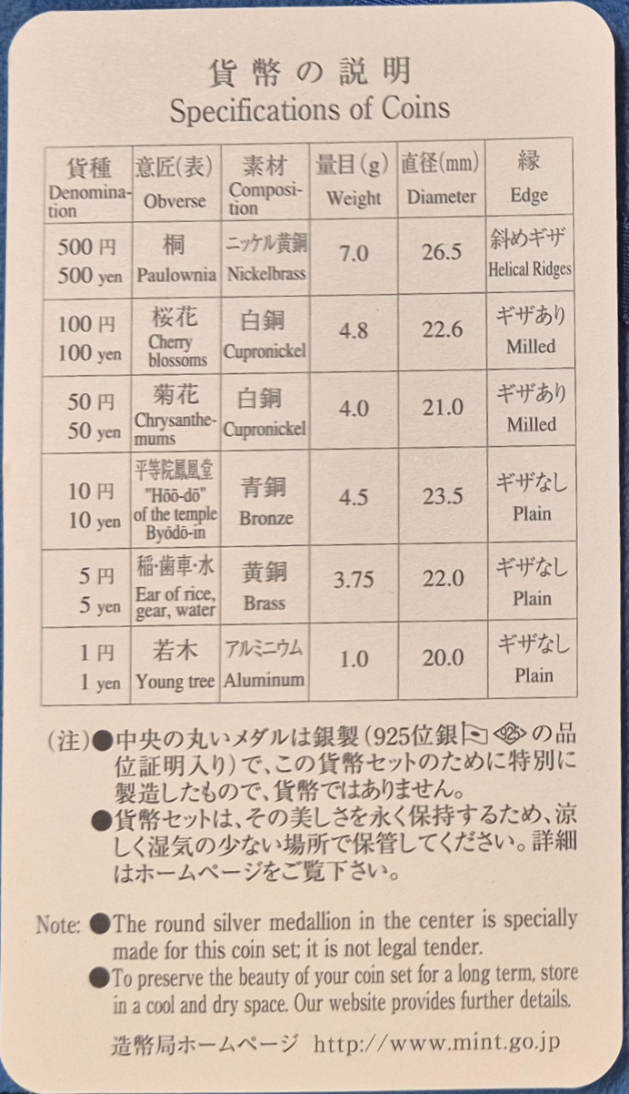 발행처: 일본 조폐국 (Japan Mint / 造幣局)