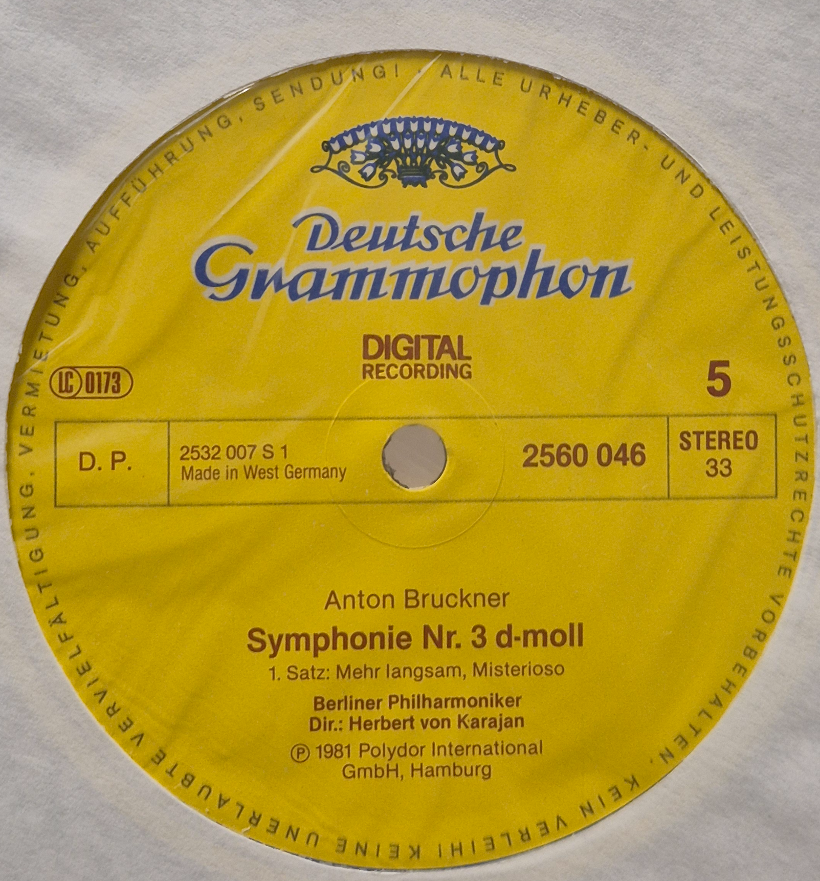 레코드 레이블은 Deutsche Grammophon 특유의 노란색 바탕에 파란색 글씨로 "DIGITAL RECORDING"이 표시되어 있습니다. 1981년 폴리도르 인터내셔널에서 제작되었습니다.