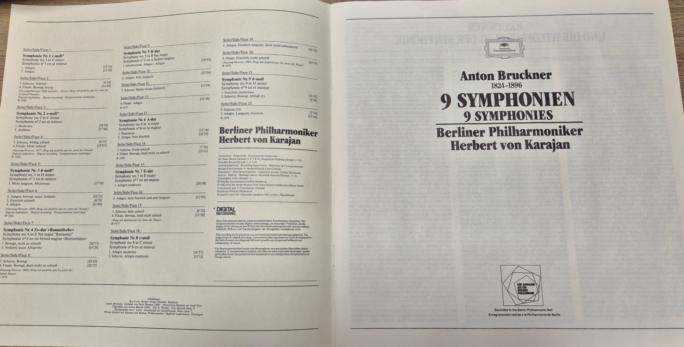 헤르베르트 폰 카라얀과 베를린 필하모닉의 브루크너 9개 교향곡 녹음(1975-1981)은 브루크너 녹음 역사상 랜드마크로 평가받으며, 컬트적 지위를 획득했습니다. 카라얀의 음악 저변에 흐르는 깊은 감성에 대한 민감성이 돋보이는 이 녹음들은 카라얀의 최고 연주 중 하나이며, 아마도 가장 심오한 브루크너 해석으로 기록되었습니다.