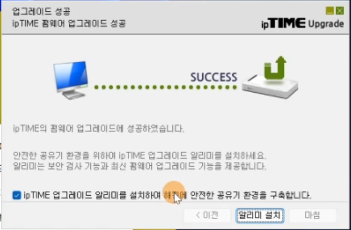 업그레이드 성공이 되었습니다 알리미는 필요하면 설치해도 무방합니다.