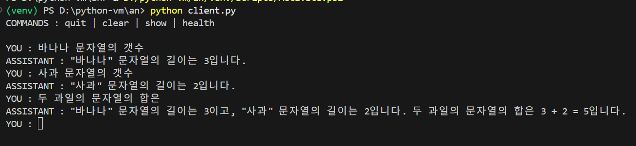 이 과정을 거쳐야 LLM이 “Tool 실행 결과를 인지한 상태”로 다음 응답을 이어서 생성하게됩니다.