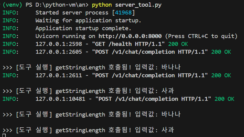 이번에는 Tool Calling 기능을 서버에서 처리하고 Tool 실행 결과를 다시 LLM 으로 전달하는 구조로 만들어봅니다.
