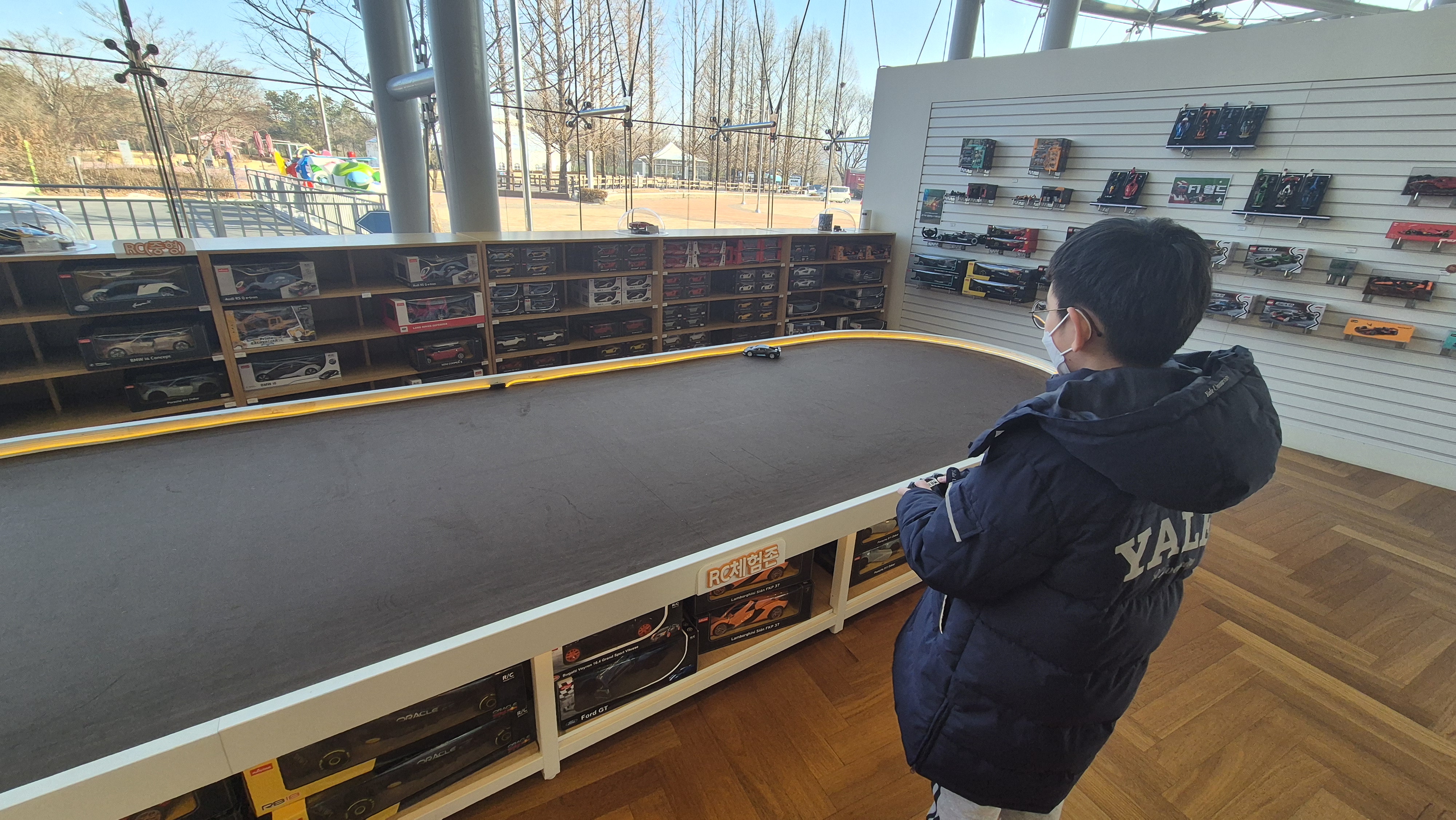입구에 굿즈점이 있는데 직접 RC 카를 조정할 수 있습니다.