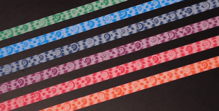 원리: 빛 회절 구조로 각도에 따라 무늬/색이 변하고 움직임이 보임.