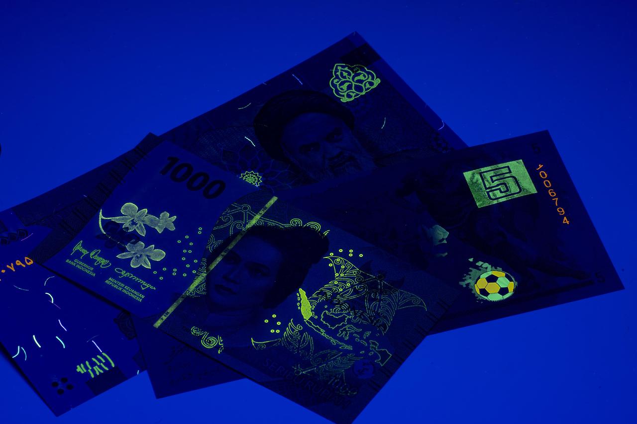 확인법: UV 손전등으로 비추면 특정 숫자/문양/섬유가 빛남.