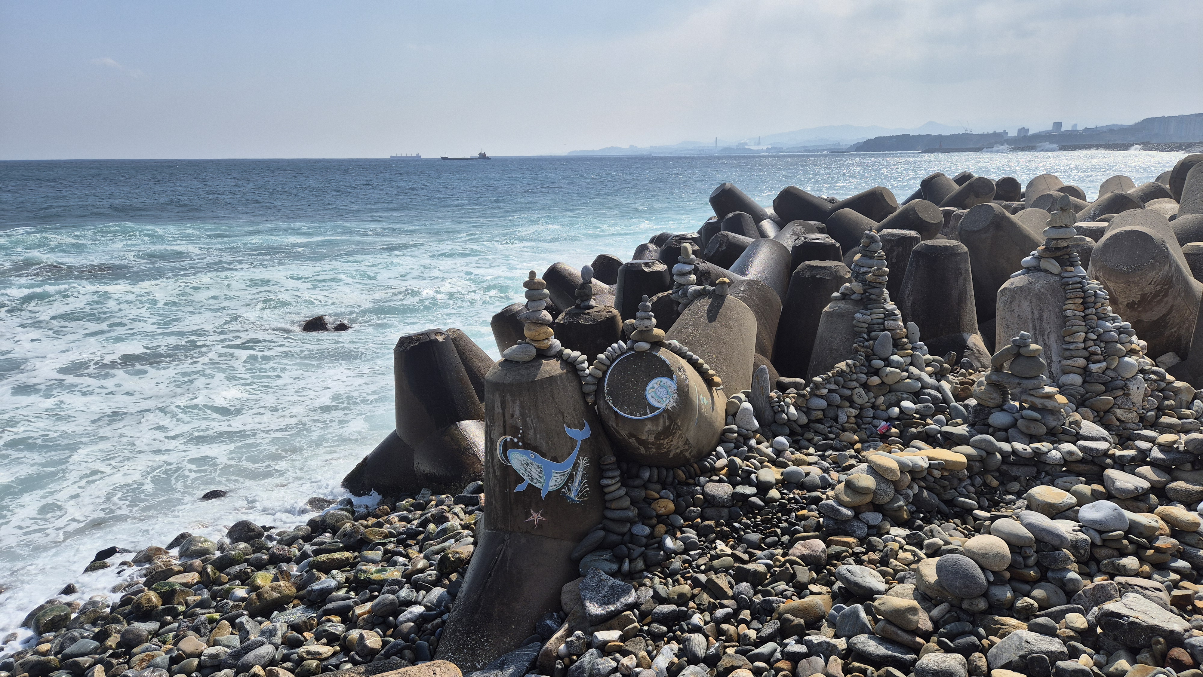 근처 바다를 구경했습니다. 돌을 아주 이쁘게 잘 쌓아놨네요^^