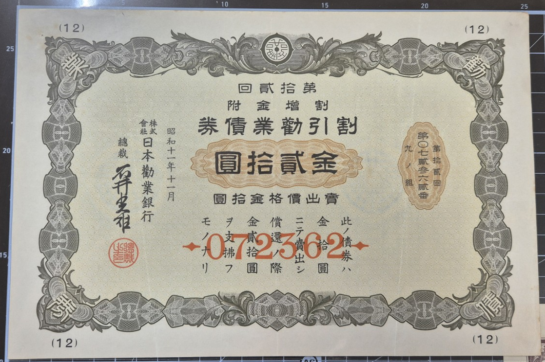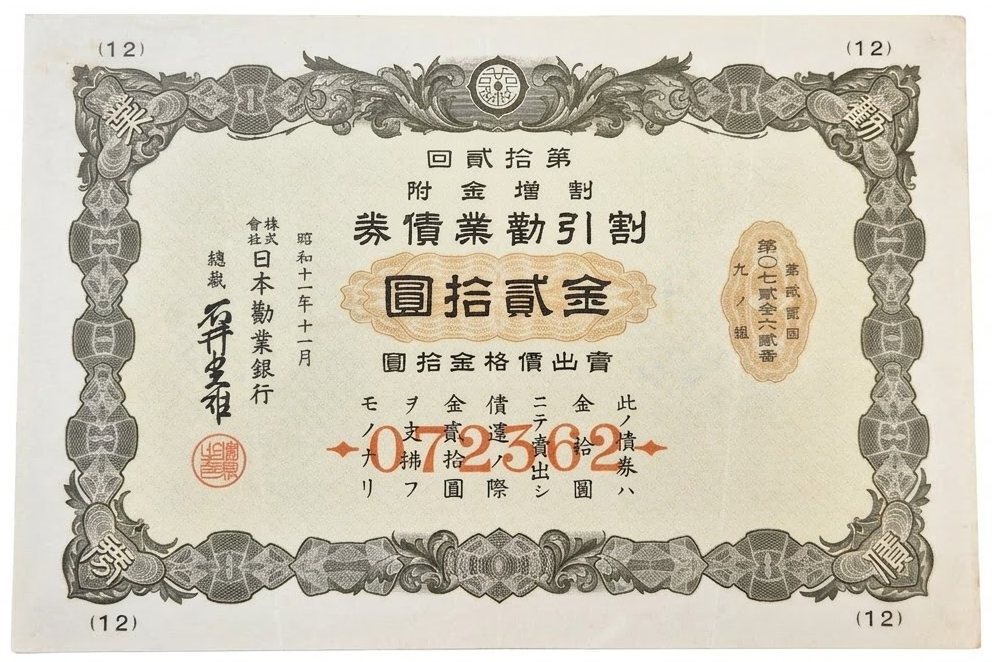 발행기관: 일본 권업은행 (日本勸業銀行, Nippon Kangyo Bank)