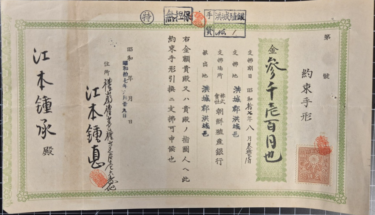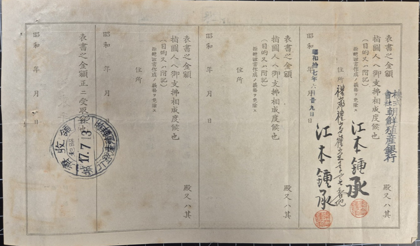 支払場所 株式會社 朝鮮殖産銀行 : 지급 장소: 조선식산은행
