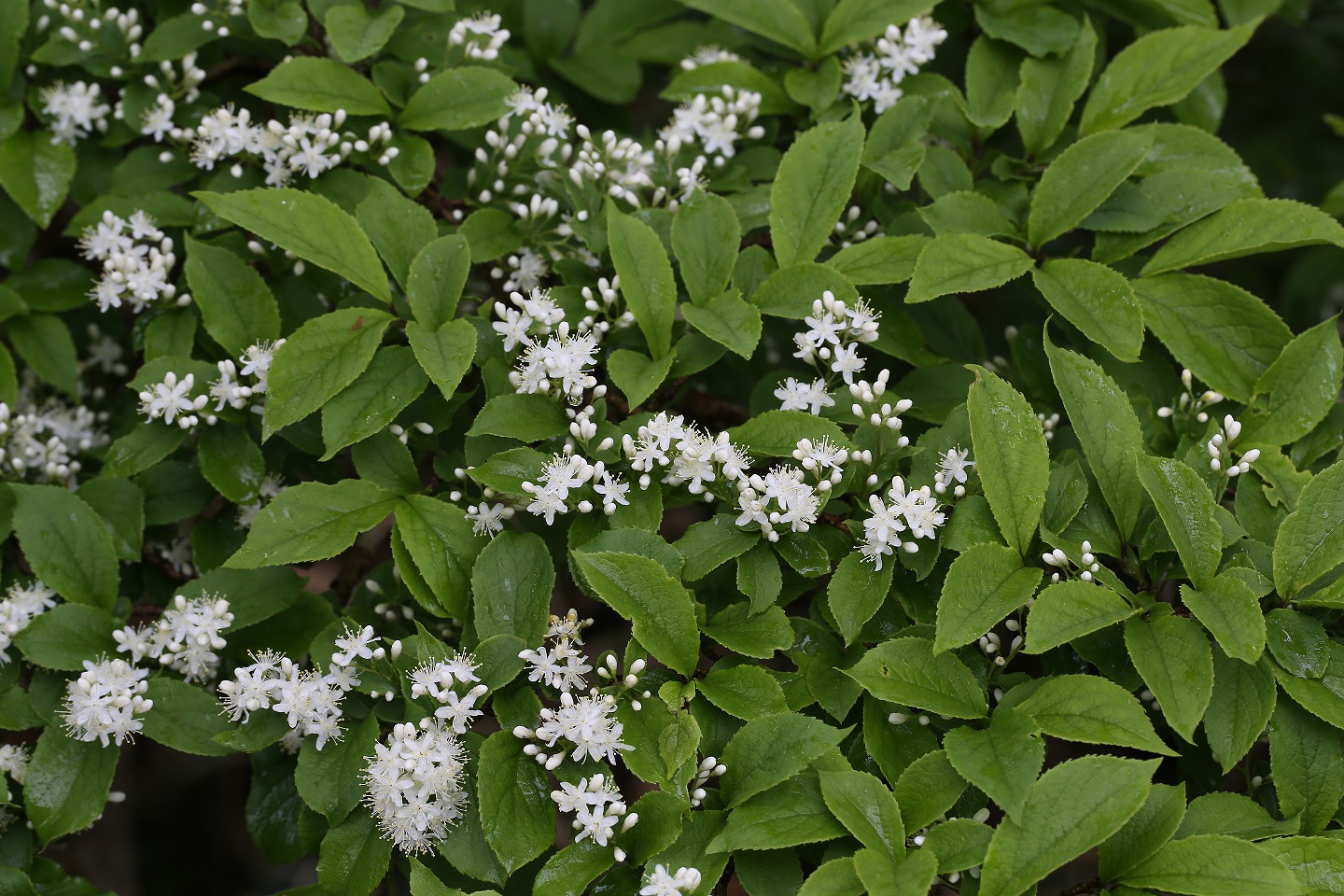 꽃은 주로 5월에 핍니다. 이 꽃은 백색이며 향기를 풍깁니다. 꽃들은 원추화서로 형태를 이루며 새 가지 끝에 달리며, 꽃대에는 털이 조금 있습니다. 꽃잎은 긴 타원형이며 옆으로 펴져 있습니다.