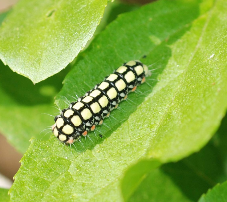 유충의 등판이 바둑판에 사각의 흰 돌을 놓은 것처럼 보인다.