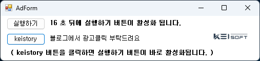 20초를 기다리시거나 아래 keistory 버튼을 클릭하시면 아래처럼 실행하기 버튼이 활성화됩니다.